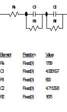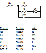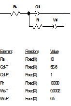 實(shí)際上,當(dāng)p=1時(shí),如果令T=C,則有Z=1/(jωC),此時(shí)CPE相當(dāng)于一個(gè)純電容,波特圖上為一個(gè)在第一象限的半圓,相應(yīng)電流的相位超過電位正好90度,當(dāng)p=-1時(shí),如果令T=1/L,則有Z=jωL,此時(shí)CPE相當(dāng)于一個(gè)純電感,波特圖上為一在第四象限的正半圓,相應(yīng)電流的相位落后電位正好90度;當(dāng)p=0時(shí),如果令T=1/R,則Z=R,此時(shí)CPE完全是一個(gè)電阻。