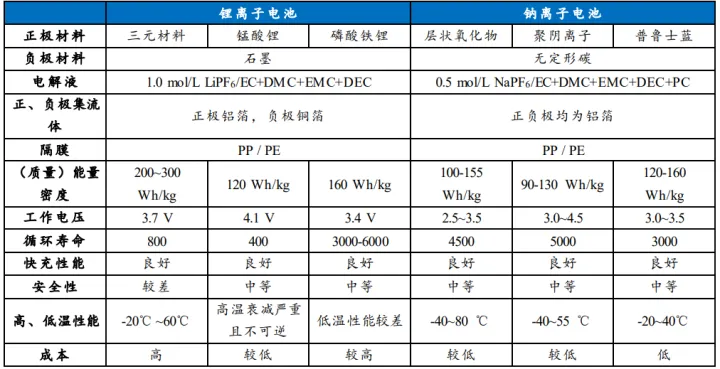 基于其性能上的差異,鋰離子電池和鈉離子有望形成