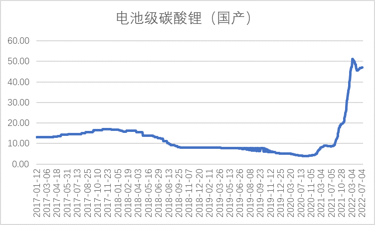 50萬元/噸,翻了十多倍。在全球能源結構轉型的大背景下,新能源汽車和儲能應用持續(xù)超預期發(fā)展,