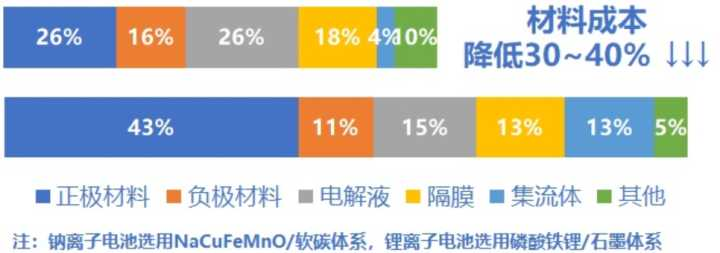 集流體均可采用廉價的鋁箔,替代了原先鋰離子 電池中較貴的銅制負極集流體;另外,鈉離子電池電解質中